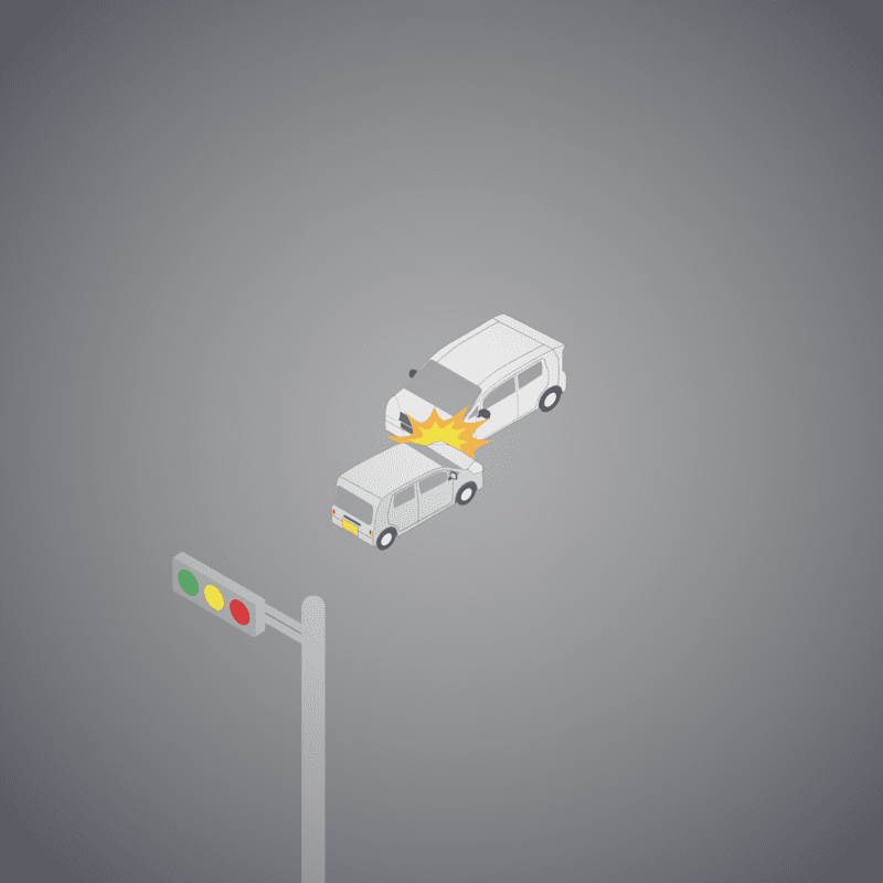 ・イラストに使用している各要素(車、背景、車、天候、信号、衝突地点など)は、代表的なイメージをイラスト化しており、色や形状等含め現実の事故の状況とは異なります。あくまで、事故のイメージとして参考までにご活用ください。