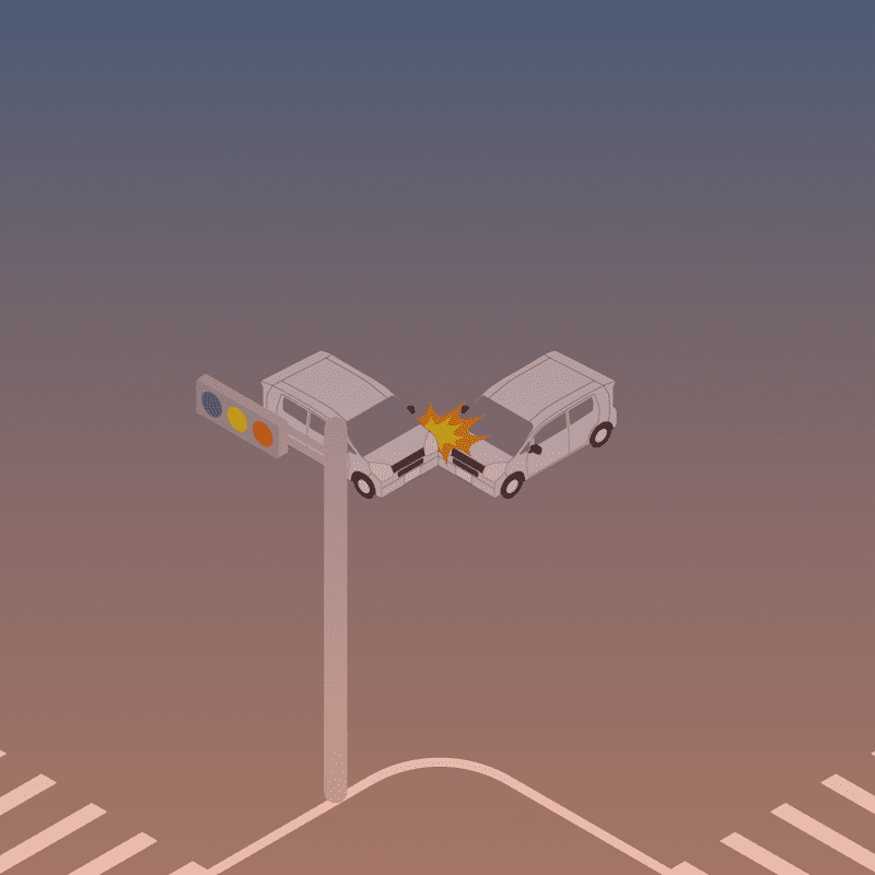 ・イラストに使用している各要素(車、背景、車、天候、信号、衝突地点など)は、代表的なイメージをイラスト化しており、色や形状等含め現実の事故の状況とは異なります。あくまで、事故のイメージとして参考までにご活用ください。