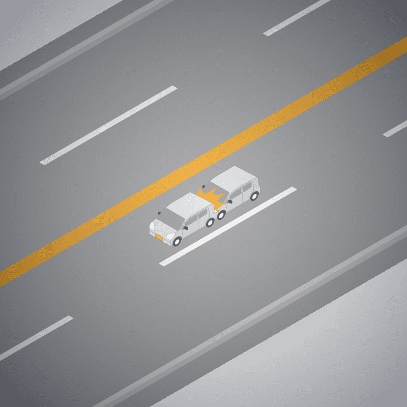 ・イラストに使用している各要素(車、背景、車、天候、信号、衝突地点など)は、代表的なイメージをイラスト化しており、色や形状等含め現実の事故の状況とは異なります。あくまで、事故のイメージとして参考までにご活用ください。