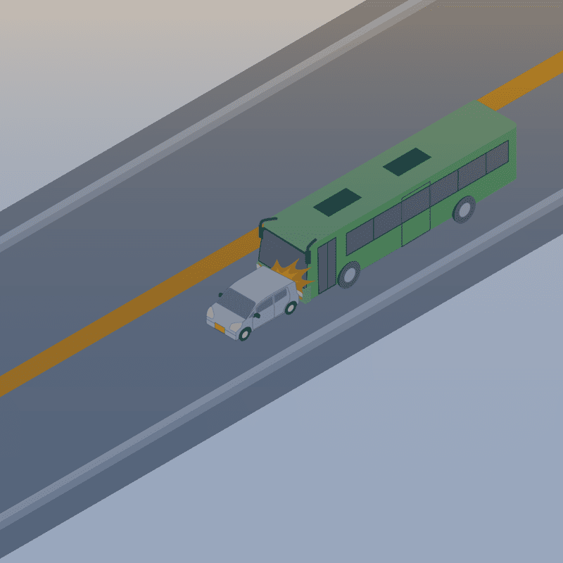 ・イラストに使用している各要素(車、背景、車、天候、信号、衝突地点など)は、代表的なイメージをイラスト化しており、色や形状等含め現実の事故の状況とは異なります。あくまで、事故のイメージとして参考までにご活用ください。