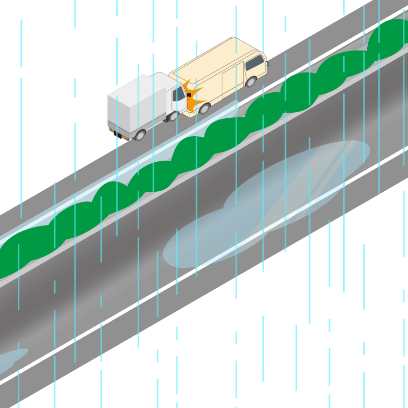 ・イラストに使用している各要素(車、背景、車、天候、信号、衝突地点など)は、代表的なイメージをイラスト化しており、色や形状等含め現実の事故の状況とは異なります。あくまで、事故のイメージとして参考までにご活用ください。