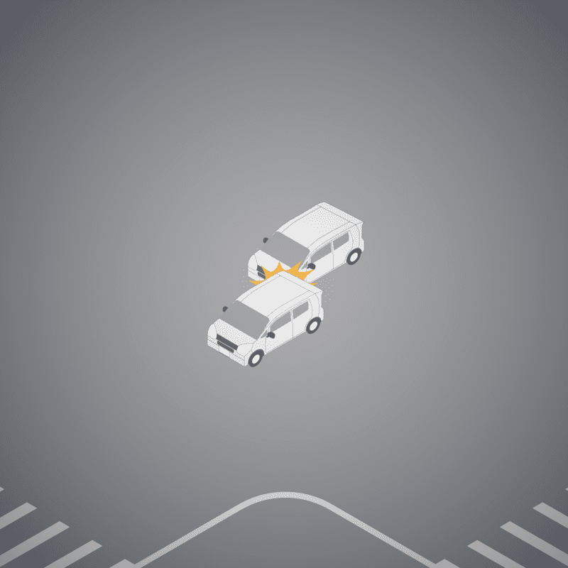 ・イラストに使用している各要素(車、背景、車、天候、信号、衝突地点など)は、代表的なイメージをイラスト化しており、色や形状等含め現実の事故の状況とは異なります。あくまで、事故のイメージとして参考までにご活用ください。