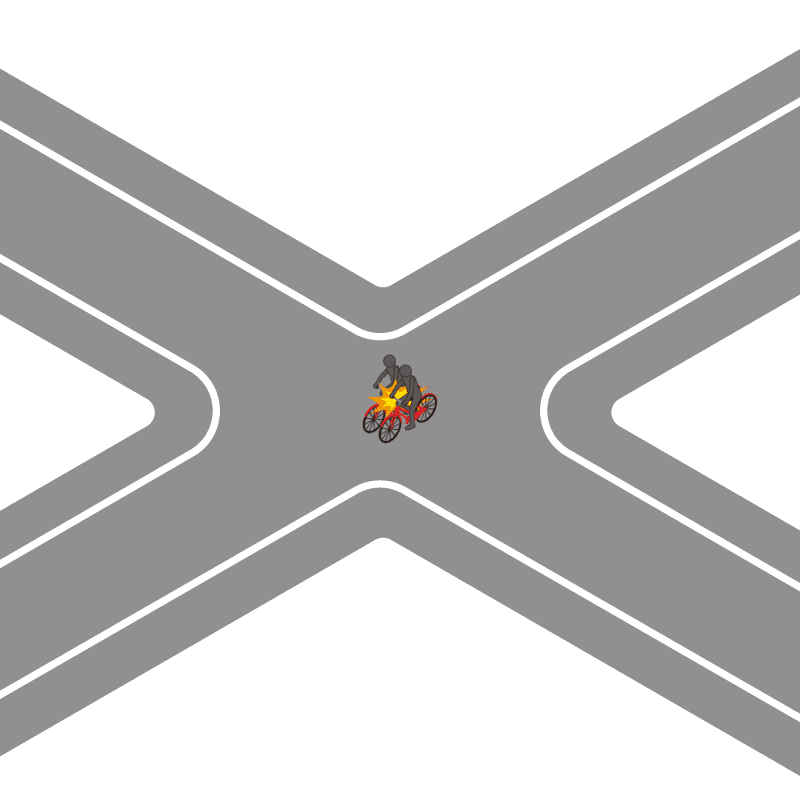 ・イラストに使用している各要素(車、背景、車、天候、信号、衝突地点など)は、代表的なイメージをイラスト化しており、色や形状等含め現実の事故の状況とは異なります。あくまで、事故のイメージとして参考までにご活用ください。