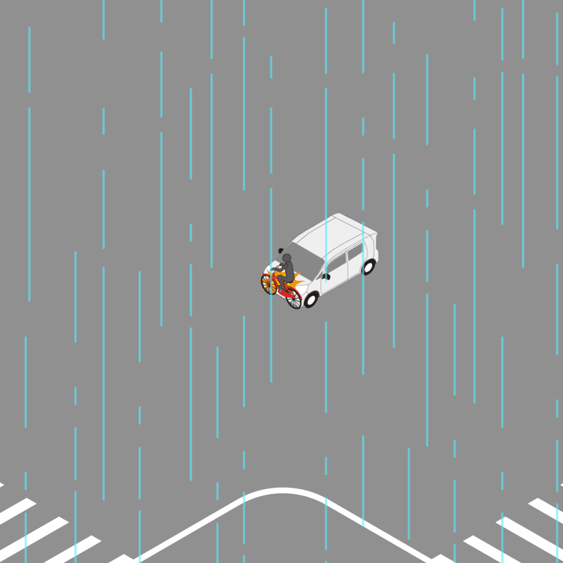 ・イラストに使用している各要素(車、背景、車、天候、信号、衝突地点など)は、代表的なイメージをイラスト化しており、色や形状等含め現実の事故の状況とは異なります。あくまで、事故のイメージとして参考までにご活用ください。
