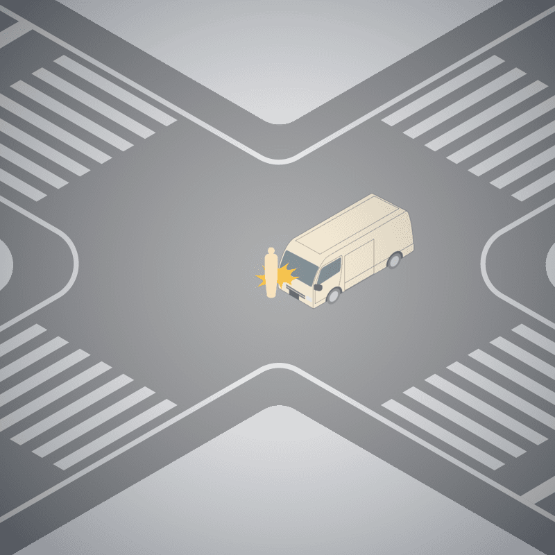 ・イラストに使用している各要素(車、背景、車、天候、信号、衝突地点など)は、代表的なイメージをイラスト化しており、色や形状等含め現実の事故の状況とは異なります。あくまで、事故のイメージとして参考までにご活用ください。