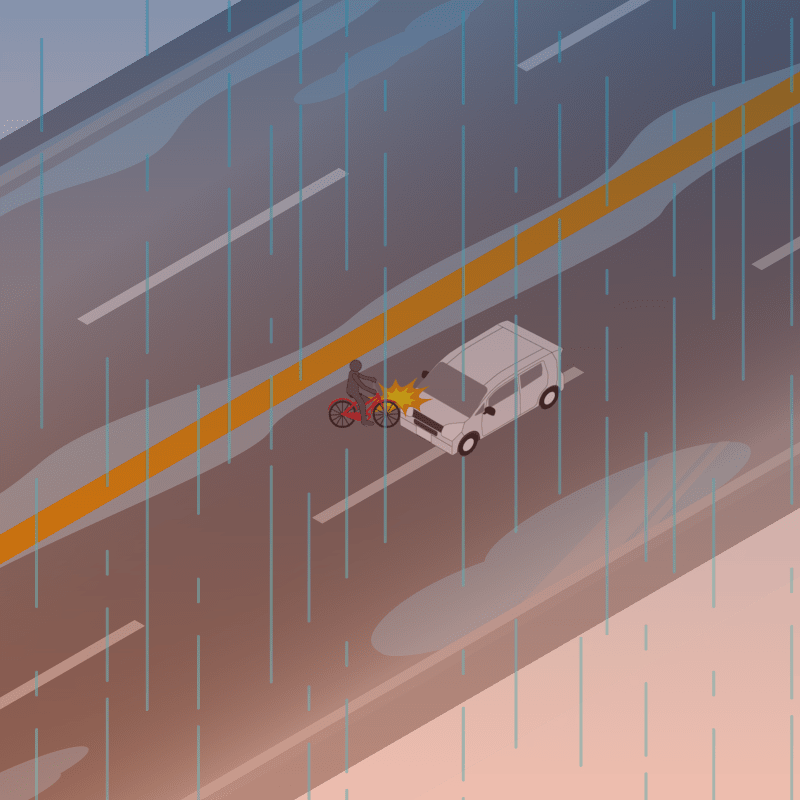 ・イラストに使用している各要素(車、背景、車、天候、信号、衝突地点など)は、代表的なイメージをイラスト化しており、色や形状等含め現実の事故の状況とは異なります。あくまで、事故のイメージとして参考までにご活用ください。