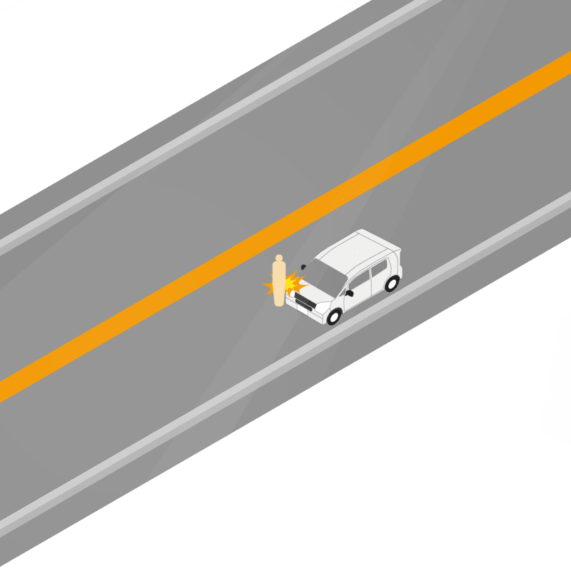 ・イラストに使用している各要素(車、背景、車、天候、信号、衝突地点など)は、代表的なイメージをイラスト化しており、色や形状等含め現実の事故の状況とは異なります。あくまで、事故のイメージとして参考までにご活用ください。