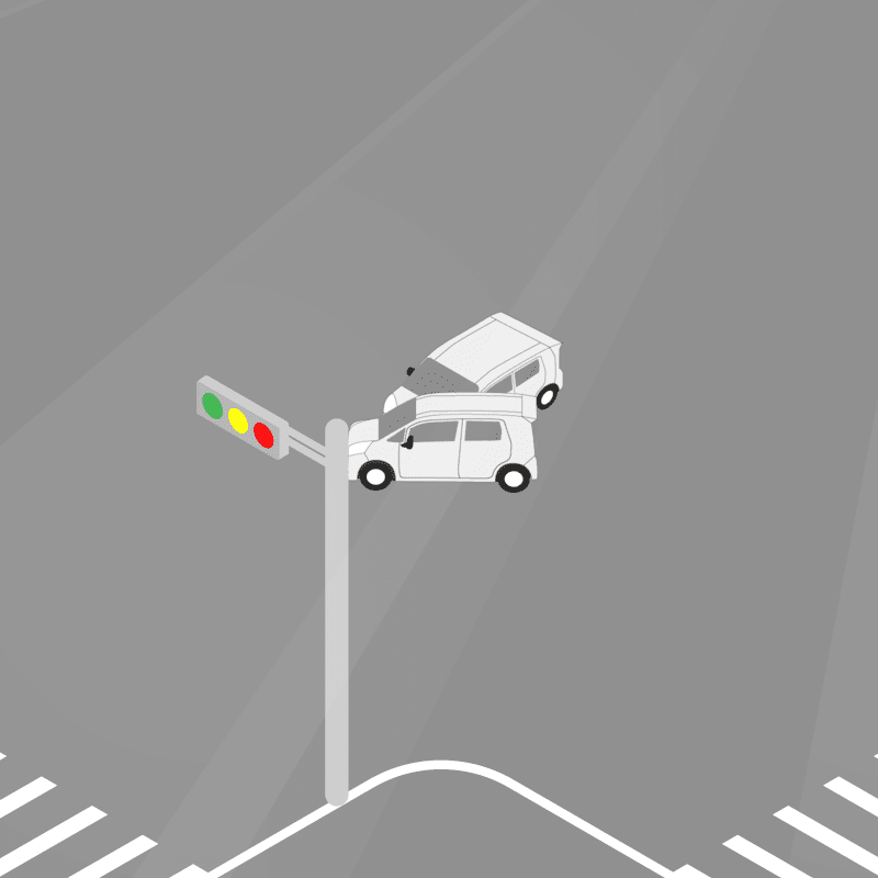 ・イラストに使用している各要素(車、背景、車、天候、信号、衝突地点など)は、代表的なイメージをイラスト化しており、色や形状等含め現実の事故の状況とは異なります。あくまで、事故のイメージとして参考までにご活用ください。