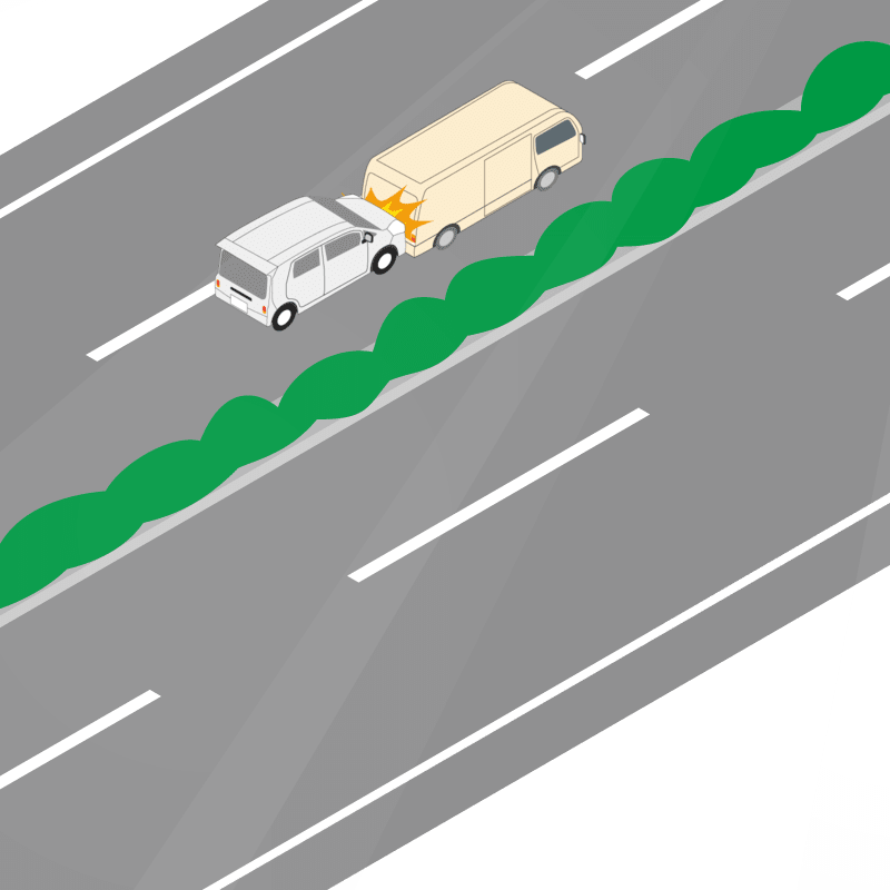 ・イラストに使用している各要素(車、背景、車、天候、信号、衝突地点など)は、代表的なイメージをイラスト化しており、色や形状等含め現実の事故の状況とは異なります。あくまで、事故のイメージとして参考までにご活用ください。
