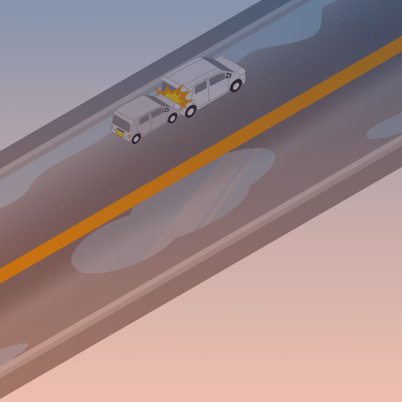・イラストに使用している各要素(車、背景、車、天候、信号、衝突地点など)は、代表的なイメージをイラスト化しており、色や形状等含め現実の事故の状況とは異なります。あくまで、事故のイメージとして参考までにご活用ください。