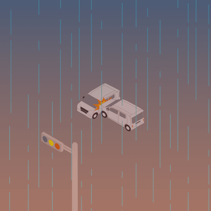 ・イラストに使用している各要素(車、背景、車、天候、信号、衝突地点など)は、代表的なイメージをイラスト化しており、色や形状等含め現実の事故の状況とは異なります。あくまで、事故のイメージとして参考までにご活用ください。