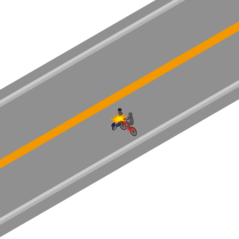 ・イラストに使用している各要素(車、背景、車、天候、信号、衝突地点など)は、代表的なイメージをイラスト化しており、色や形状等含め現実の事故の状況とは異なります。あくまで、事故のイメージとして参考までにご活用ください。