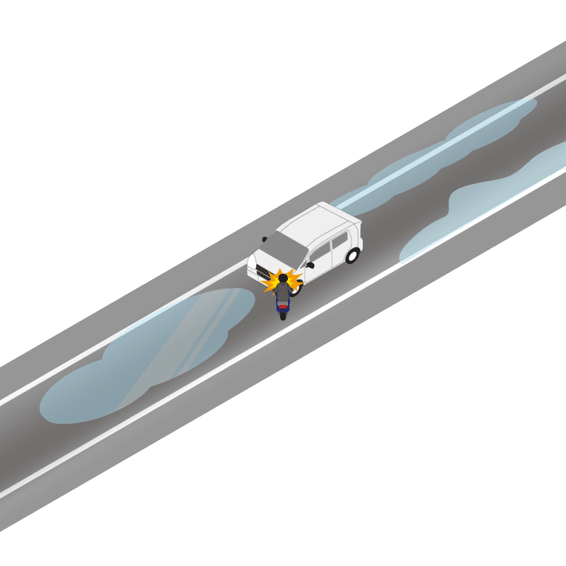 ・イラストに使用している各要素(車、背景、車、天候、信号、衝突地点など)は、代表的なイメージをイラスト化しており、色や形状等含め現実の事故の状況とは異なります。あくまで、事故のイメージとして参考までにご活用ください。