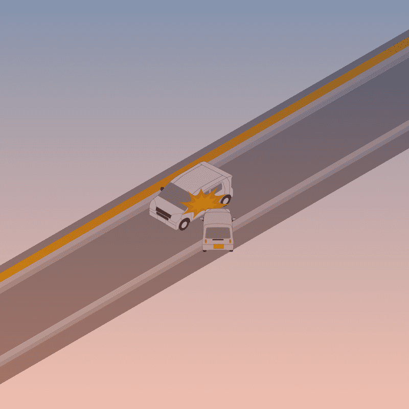 ・イラストに使用している各要素(車、背景、車、天候、信号、衝突地点など)は、代表的なイメージをイラスト化しており、色や形状等含め現実の事故の状況とは異なります。あくまで、事故のイメージとして参考までにご活用ください。