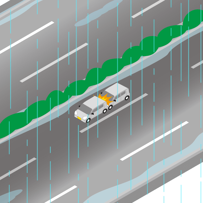 ・イラストに使用している各要素(車、背景、車、天候、信号、衝突地点など)は、代表的なイメージをイラスト化しており、色や形状等含め現実の事故の状況とは異なります。あくまで、事故のイメージとして参考までにご活用ください。