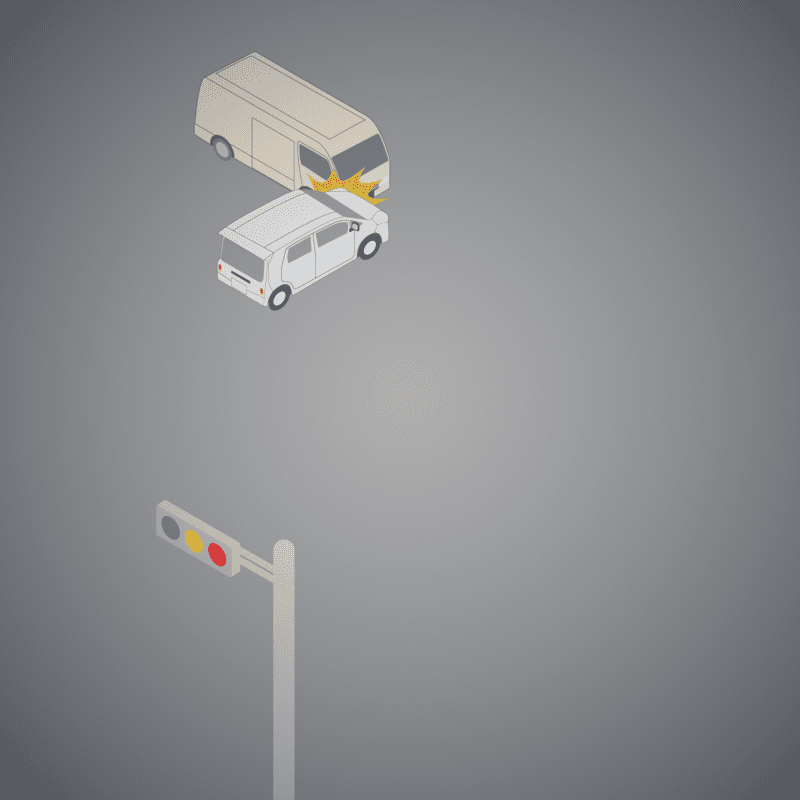 ・イラストに使用している各要素(車、背景、車、天候、信号、衝突地点など)は、代表的なイメージをイラスト化しており、色や形状等含め現実の事故の状況とは異なります。あくまで、事故のイメージとして参考までにご活用ください。