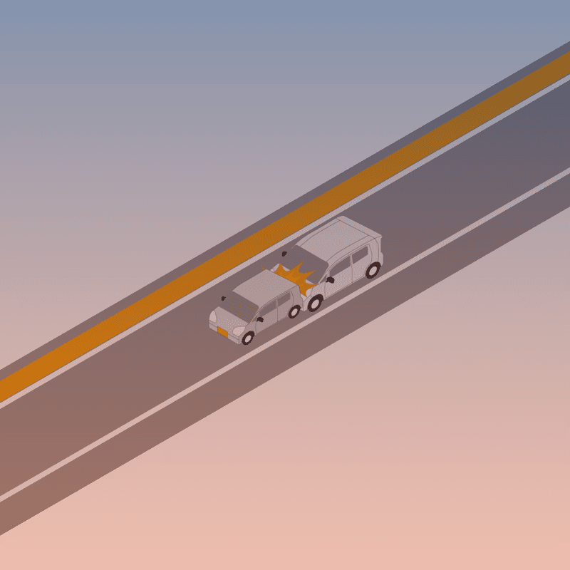 ・イラストに使用している各要素(車、背景、車、天候、信号、衝突地点など)は、代表的なイメージをイラスト化しており、色や形状等含め現実の事故の状況とは異なります。あくまで、事故のイメージとして参考までにご活用ください。