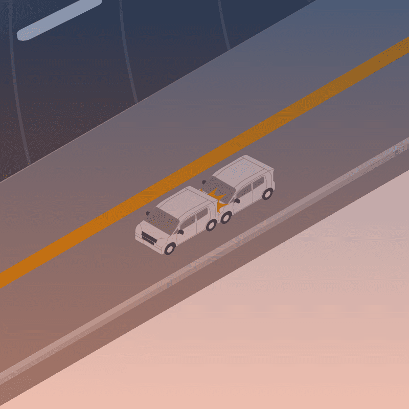 ・イラストに使用している各要素(車、背景、車、天候、信号、衝突地点など)は、代表的なイメージをイラスト化しており、色や形状等含め現実の事故の状況とは異なります。あくまで、事故のイメージとして参考までにご活用ください。