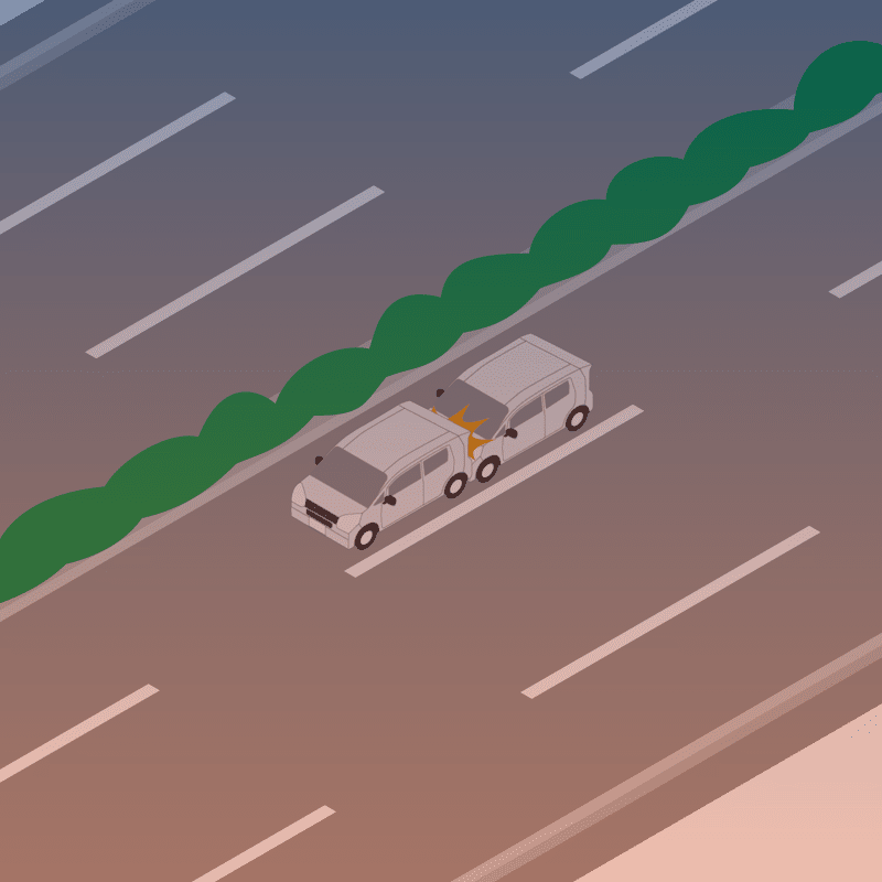 ・イラストに使用している各要素(車、背景、車、天候、信号、衝突地点など)は、代表的なイメージをイラスト化しており、色や形状等含め現実の事故の状況とは異なります。あくまで、事故のイメージとして参考までにご活用ください。