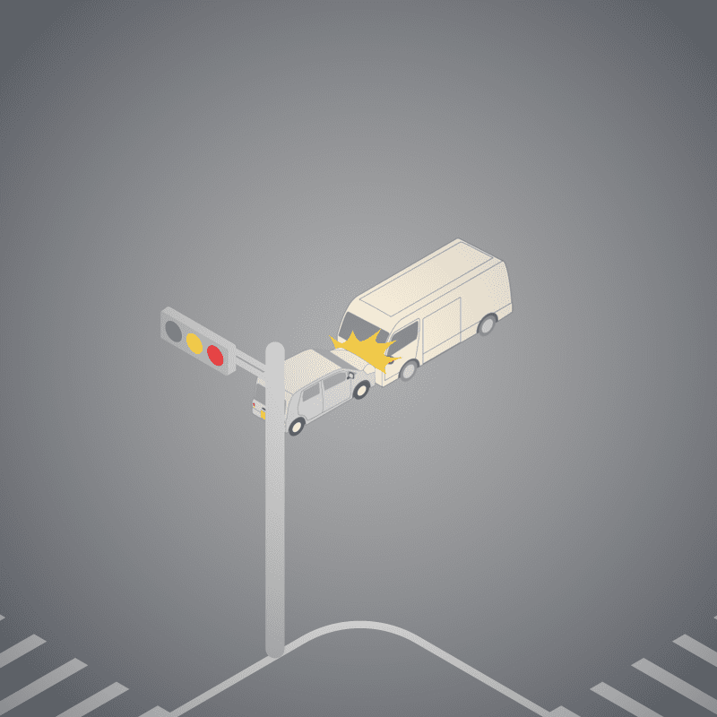 ・イラストに使用している各要素(車、背景、車、天候、信号、衝突地点など)は、代表的なイメージをイラスト化しており、色や形状等含め現実の事故の状況とは異なります。あくまで、事故のイメージとして参考までにご活用ください。