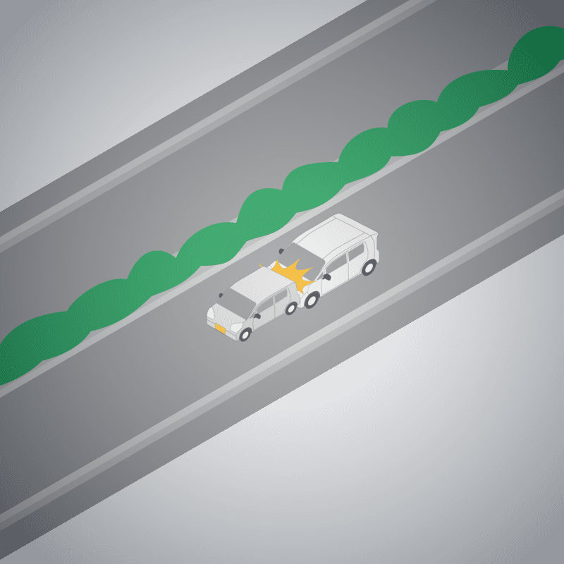 ・イラストに使用している各要素(車、背景、車、天候、信号、衝突地点など)は、代表的なイメージをイラスト化しており、色や形状等含め現実の事故の状況とは異なります。あくまで、事故のイメージとして参考までにご活用ください。